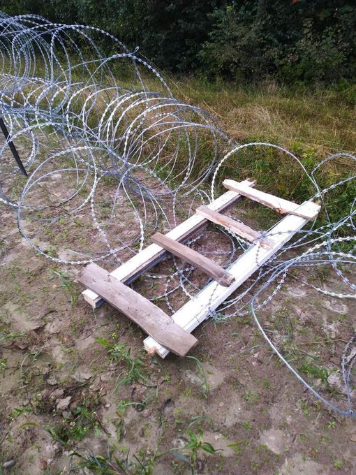 Łosie, sarny, jelene i wiele innych dzikich zwierząt niestety nie zrobią sobie takich drabinek, tylko zginą żywcem krojone na plasterki przez te taśmy, gdy będą się próbowały wyrwać z tych spiral. Ktoś, kto stawia wnyki na swoim polu idzie do więzienia, a POZBAWIONY EMPATII I WYOBRAŹNI PÓŁGŁÓWEK, który robi z kilkudziesięciu kilometrów polskiej granicy RZEŹNIĘ i JATKĘ będzie siedział w rządzie, parlamence i włos z głowy mu nie spadnie, podczas gdy powinien dostać wyrok za KŁUSOWNICTWO i ZNĘCANIE SIĘ nad zwierzętami ZE SZCZEGÓLNYM OKRUCIEŃSTWEM.