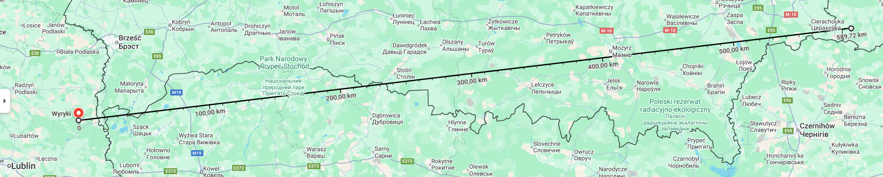 Dron na królikarni w Bychawce Trzeciej pod Lublinem przebył minimum 650km, jeśli przyjąć lot po linii prostej: